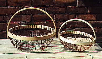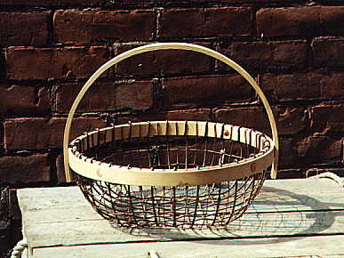Hand made of pounded ash Higgins Basket rims on traditional Ipswich copper clam baskets. Made in West Chesterfield, Mass. by professional sportsman Edwin E. Lawler Price: $195.00 Home