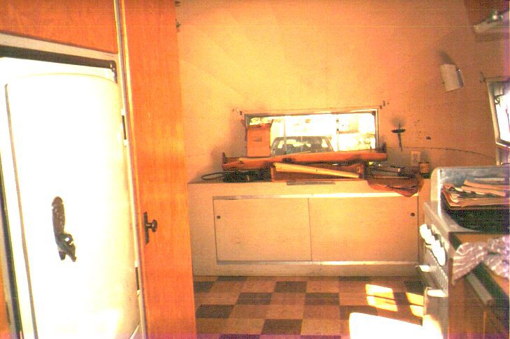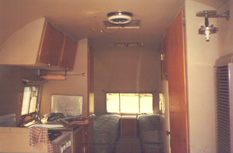 Has twin rear beds with mattresses and box springs intact. No shower or